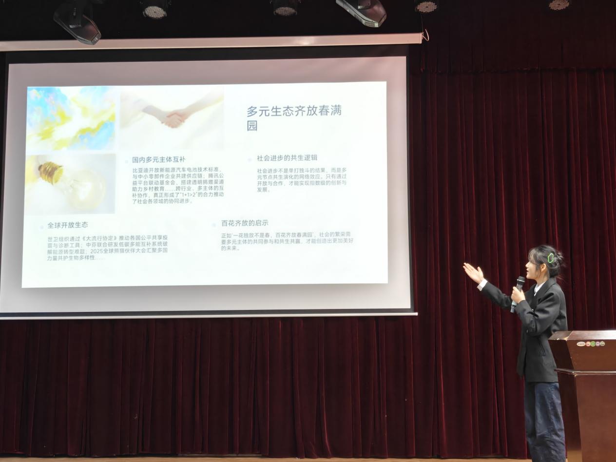 作为学校极具影响力的校园文化活动,“为之杯”演讲比赛自创办以来便以“以言表意、以讲传情、以理动人”为宗旨,已沉淀成学子展现自我的重要平台。历经两周选拔及校级初赛,13位优秀选手从全校选手中脱颖而出晋级决赛。决赛设主题演讲与即兴演讲环节,全面考验选手能力。主题演讲中,政法学院参赛选手以《在共生纬度里绣山河万朵》诠释家国情怀,新能源学院参赛选手以《一花独放不是春,百花齐放春满园》分享成长感悟,真挚表达引发共鸣。即兴演讲环节,选手随机抽取“青春的选择”“科技与人文的碰撞”等议题,经60秒思考后即刻登台。他们沉着应对,或旁征博引、逻辑缜密,或真情流露、感染力强,将比赛推向高潮,展现出扎实功底与应变能力。评委团从内容、表达等多维度评判,评选出一、二、三等奖及最佳风采奖若干。颁奖环节,指导老师匡竞等人颁奖并点评,肯定选手展现的青春风采与责任担当,鼓励大家以赛事为起点锤炼思想、共同成长。