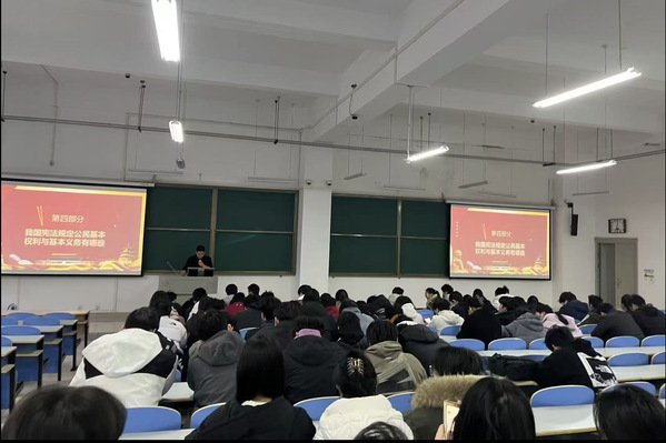 活动前期遴选了一批优秀团员代表进行集体备课,活动中,各年级主讲团员代表以饱满的热情和严谨的态度,领学了习近平法治思想与《中华人民共和国宪法》条文。他们系统阐释了宪法的基本原则与制度优势,并结合能源行业依法合规典型案例进行讲解,使抽象的法条变得具体可感。同学们聚精会神聆听,并围绕"如何在专业实践中践行法治精神"展开热烈讨论。网络侵权短视频等贴近生活的内容让大家意识到宪法并非遥不可及,而是守护青春成长的坚实盾牌。