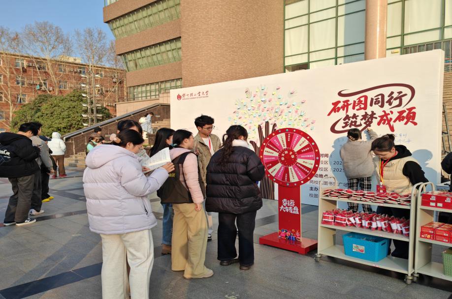 12月17日下午,东风校区读书协会在图书馆广场举办“研图同行·筑梦成硕”考研助力主题活动,营造积极向上、互助友爱的校园氛围,缓解考研学子的备考压力。