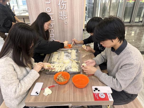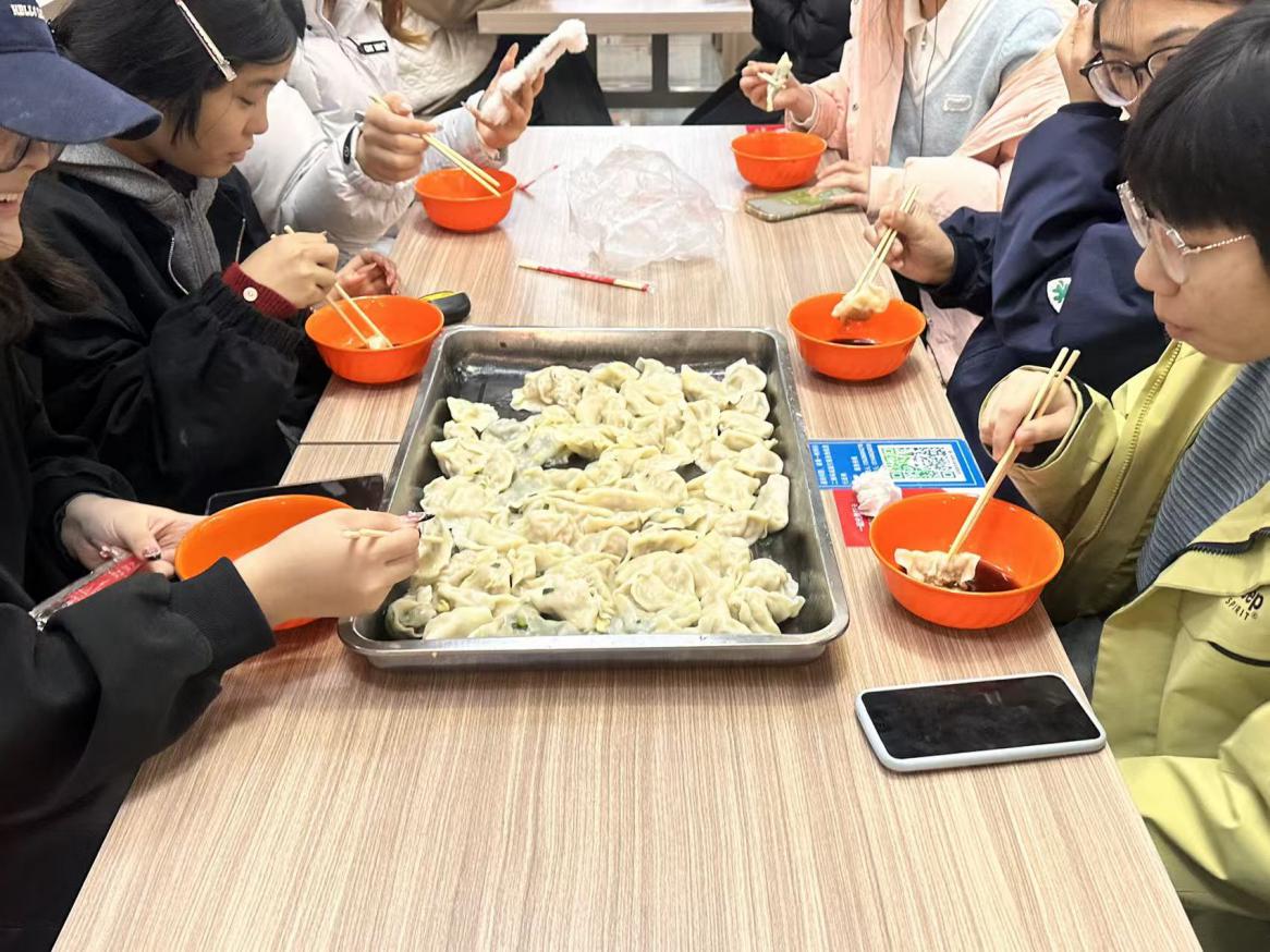 活动现场气氛热烈,同学们以社团为单位分组协作,从和面擀皮到填馅塑形,亲手完成饺子的制作全过程。过程中,同学们互相交流手法,各式创意造型层出不穷,欢声笑语不断。随着一盘盘饺子陆续下锅、热气蒸腾,餐厅内香气四溢,大家品尝着自己的劳动成果,感受着浓浓的温暖与满足。大家在实践中收获了实用的生活技能,更在互帮互助的协作里,深切感受到共同付出的成就感与集体劳动的暖心氛围。
