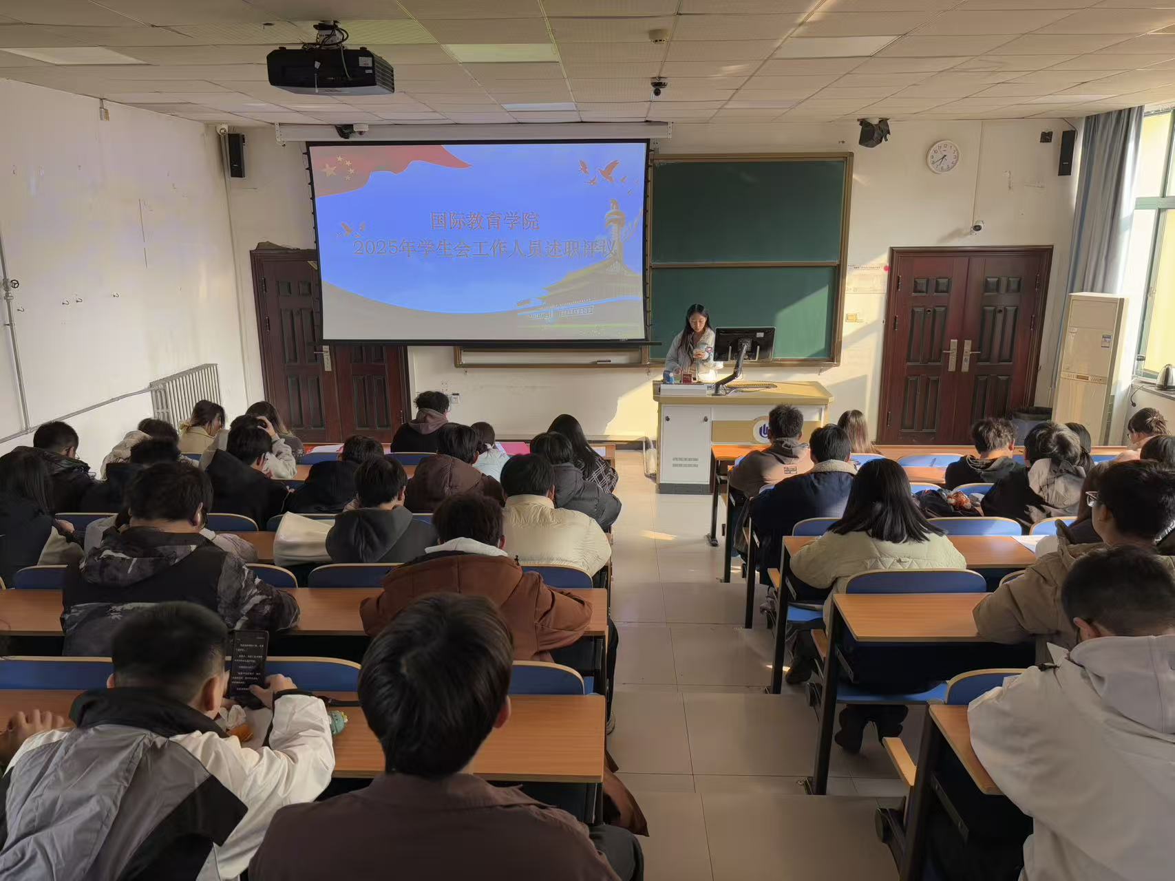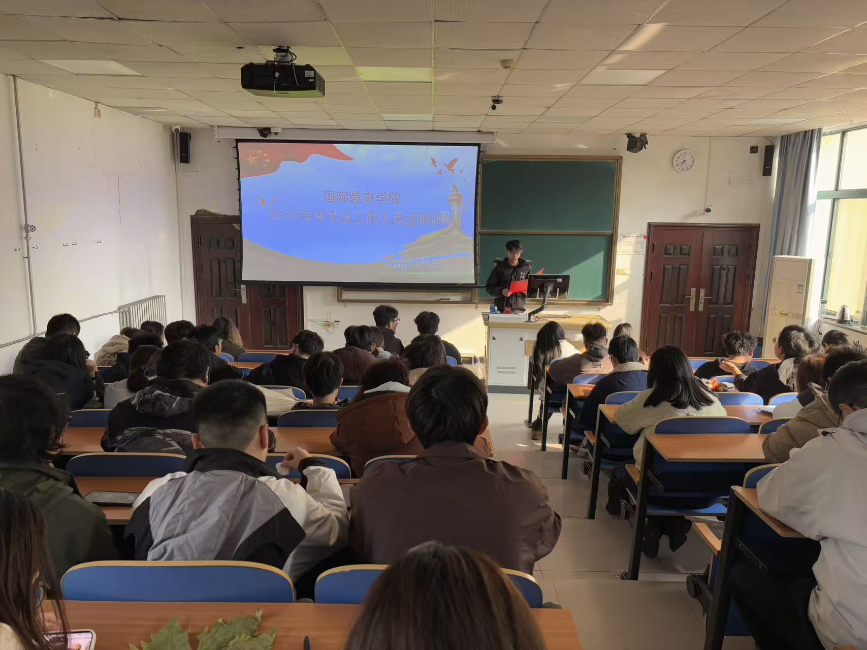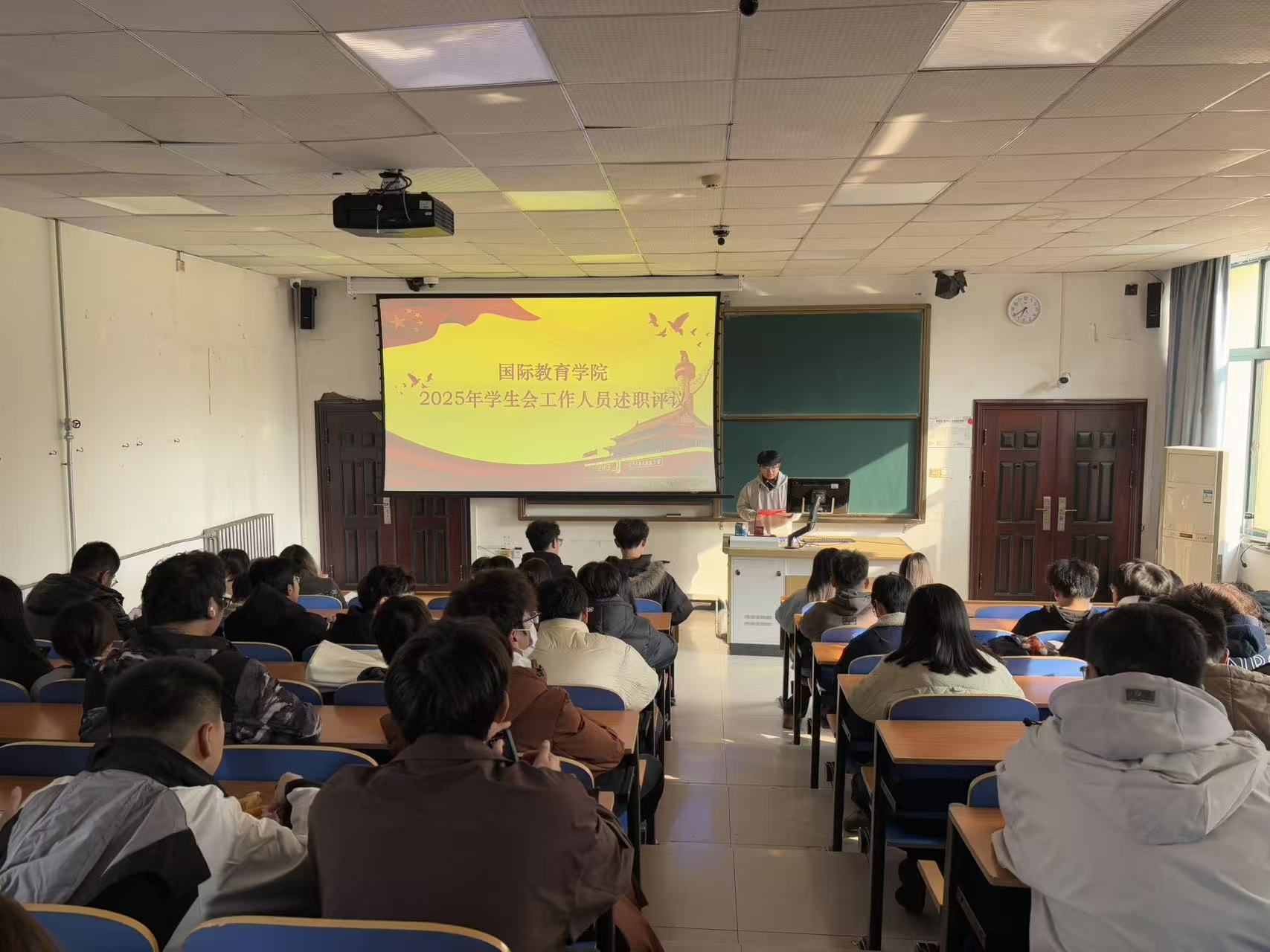 为推动学生会深化改革,切实提升服务同学的能力与水平,2025年12月18日,国际教育学院在教二楼229举办了学生会工作人员述职评议会。学院团委书记及各年级学生代表参加了本次评议会。