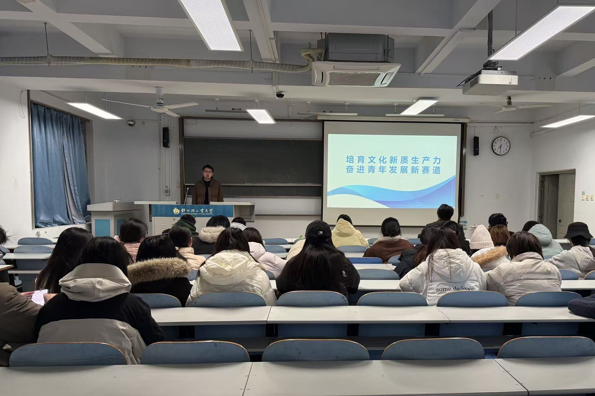12月29日,学校第二十九期青马班、第六届青马学会分别在东风校区教三楼709室和科学校区二教楼710室开展实践课程学习,本次课程由校团委段晨阳老师授课,以《培育文化新质生产力 奋进青年发展新赛道》为主题进行详细讲解。