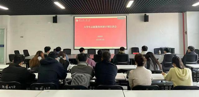 大学生志愿服务西部计划是由共青团中央、教育部、财政部、人力资源社会保障部共同组织实施的人才工程。此次宣讲会不仅加深了同学们对西部计划的认识,也进一步激发了青年学子服务国家战略、投身基层建设的热情。下一步,学校将持续做好宣传动员与组织服务工作,引导更多青年在祖国最需要的地方绽放青春、建功立业。