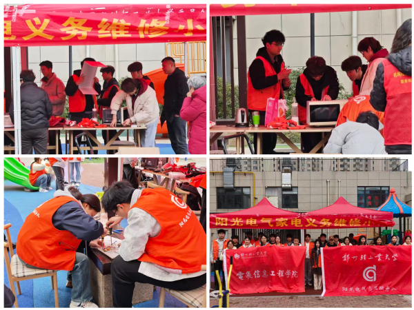 活动现场,志愿者们早早搭起服务台,准备好万用表、电烙铁、螺丝刀等维修工具。居民们陆续将家中故障的电饭煲、电风扇、热水壶、微波炉等小家电送到维修点。志愿者们分工有序,有的负责登记编号,有的进行故障检测,有的专注拆卸维修。在专业指导老师高鹏飞的指导下,同学们充分运用专业知识,仔细排查电路、更换损坏元件、调试运行状态,让一件件家电重获新生。维修过程中,志愿者们还耐心向居民讲解家电日常保养方法,普及安全用电知识,将课堂所学转化为服务民生的实际能力。本次活动共接收故障家电30余件,现场修复率达75%以上。