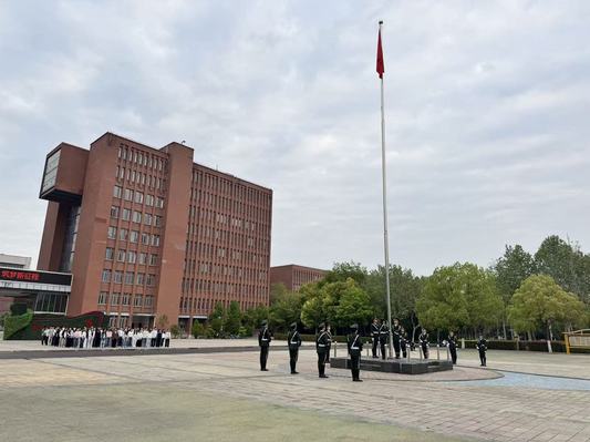 晨曦微露,晨风轻拂,仪式在肃穆的氛围中拉开帷幕。英姿飒爽的国旗护卫队队员身着整齐制服,迈着铿锵有力的步伐,昂首挺胸护送鲜艳的五星红旗走向升旗台,每一步都彰显着青年学子的昂扬斗志与坚定信念。伴随着雄壮激昂的《义勇军进行曲》,五星红旗冉冉升起、迎风飘扬,全体师生整齐列队、神情肃穆,面向国旗庄严行注目礼,齐声高唱国歌,家国情怀与时代使命在这一刻深深镌刻在每一位师生心中。